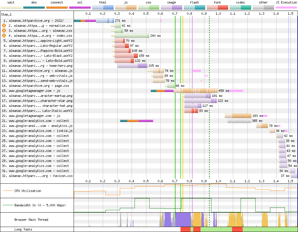 - {"":["https:\/\/almanac.httparchive.org\/en\/2022\/"],"https:\/\/almanac.httparchive.org\/en\/2022\/":["https:\/\/almanac.httparchive.org\/static\/css\/normalize.css?v=3a712a3381a95c0a7b7c6ed3aa03b911","https:\/\/almanac.httparchive.org\/static\/css\/almanac.css?v=9855ebaccf6c51a57239b9d47e2fde41","https:\/\/almanac.httparchive.org\/static\/css\/index.css?v=69e30c0abbe9bb2368e12e7e8779d421","https:\/\/almanac.httparchive.org\/static\/fonts\/Poppins-Light.woff2","https:\/\/almanac.httparchive.org\/static\/fonts\/Lato-Regular.woff2","https:\/\/almanac.httparchive.org\/static\/fonts\/Poppins-Bold.woff2","https:\/\/almanac.httparchive.org\/static\/fonts\/Lato-Black.woff2","https:\/\/almanac.httparchive.org\/static\/fonts\/Lato-Bold.woff2","https:\/\/almanac.httparchive.org\/static\/images\/home-hero.png","https:\/\/almanac.httparchive.org\/static\/js\/almanac.js?v=096e38f74c72532860651812978526c5","https:\/\/www.googletagmanager.com\/gtag\/js?id=G-PQ5N2MZG5M","https:\/\/almanac.httparchive.org\/static\/js\/web-vitals.js?v=0bf1a7e9889865e1cbbc6058659c9d83","https:\/\/almanac.httparchive.org\/static\/js\/send-web-vitals.js?v=b7224f484fe762e075d4838286ddb066","https:\/\/almanac.httparchive.org\/static\/css\/page.css?v=0d2025140b939b072c3f4b779cbcc4fa","https:\/\/almanac.httparchive.org\/static\/images\/character-markup.png","https:\/\/almanac.httparchive.org\/static\/images\/character-star.png","https:\/\/almanac.httparchive.org\/static\/images\/character-hat.png","https:\/\/www.google-analytics.com\/collect?v=1&_v=j101&a=1970263537&t=event&_s=2&dl=https%3A%2F%2Falmanac.httparchive.org%2Fen%2F2022%2F&ul=en-us&de=UTF-8&dt=The%202022%20Web%20Almanac&sd=24-bit&sr=1920x1200&vp=1351x681&je=0&ec=user&ea=print-mode&el=false&ev=0&_u=aCDAAUIhAAAAACAAI~&jid=&gjid=&cid=1021966225.1719417729&tid=UA-22381566-3&_gid=522177547.1719417730>m=457e46o1za200zb9115874821&gcd=13l3l3l3l1&dma=0&tag_exp=0&jsscut=1&z=1664236506","https:\/\/www.google-analytics.com\/collect?v=1&_v=j101&a=1970263537&t=event&_s=3&dl=https%3A%2F%2Falmanac.httparchive.org%2Fen%2F2022%2F&ul=en-us&de=UTF-8&dt=The%202022%20Web%20Almanac&sd=24-bit&sr=1920x1200&vp=1351x681&je=0&ec=user&ea=min-sheets-width&el=true&ev=1&_u=aCDAAUIhAAAAACAAI~&jid=&gjid=&cid=1021966225.1719417729&tid=UA-22381566-3&_gid=522177547.1719417730>m=457e46o1za200zb9115874821&gcd=13l3l3l3l1&dma=0&tag_exp=0&jsscut=1&z=1897017750","https:\/\/www.google-analytics.com\/collect?v=1&_v=j101&a=1970263537&t=event&_s=4&dl=https%3A%2F%2Falmanac.httparchive.org%2Fen%2F2022%2F&ul=en-us&de=UTF-8&dt=The%202022%20Web%20Almanac&sd=24-bit&sr=1920x1200&vp=1351x681&je=0&ec=user&ea=data-saver&el=not-enabled&ev=0&_u=aCDAAUIhAAAAACAAI~&jid=&gjid=&cid=1021966225.1719417729&tid=UA-22381566-3&_gid=522177547.1719417730>m=457e46o1za200zb9115874821&gcd=13l3l3l3l1&dma=0&tag_exp=0&jsscut=1&z=1179888381","https:\/\/www.google-analytics.com\/collect?v=1&_v=j101&a=1970263537&t=event&_s=5&dl=https%3A%2F%2Falmanac.httparchive.org%2Fen%2F2022%2F&ul=en-us&de=UTF-8&dt=The%202022%20Web%20Almanac&sd=24-bit&sr=1920x1200&vp=1351x681&je=0&ec=user&ea=connection-type&el=4g&ev=1&_u=aCDAAUIhAAAAACAAI~&jid=&gjid=&cid=1021966225.1719417729&tid=UA-22381566-3&_gid=522177547.1719417730>m=457e46o1za200zb9115874821&gcd=13l3l3l3l1&dma=0&tag_exp=0&jsscut=1&z=1476517470","https:\/\/www.google-analytics.com\/collect?v=1&_v=j101&a=1970263537&t=event&_s=6&dl=https%3A%2F%2Falmanac.httparchive.org%2Fen%2F2022%2F&ul=en-us&de=UTF-8&dt=The%202022%20Web%20Almanac&sd=24-bit&sr=1920x1200&vp=1351x681&je=0&ec=user&ea=hi-res-canvas&el=supported&ev=1&_u=aCDAAUIhAAAAACAAI~&jid=&gjid=&cid=1021966225.1719417729&tid=UA-22381566-3&_gid=522177547.1719417730>m=457e46o1za200zb9115874821&gcd=13l3l3l3l1&dma=0&tag_exp=0&jsscut=1&z=954426052","https:\/\/www.google-analytics.com\/collect?v=1&_v=j101&a=1970263537&t=event&ni=1&_s=7&dl=https%3A%2F%2Falmanac.httparchive.org%2Fen%2F2022%2F&ul=en-us&de=UTF-8&dt=The%202022%20Web%20Almanac&sd=24-bit&sr=1920x1200&vp=1351x681&je=0&ec=Web%20Vitals&ea=FCP&el=v4-1719417729039-2627675439208&ev=672&_u=aCDAAUIhAAAAACAAI~&jid=&gjid=&cid=1021966225.1719417729&tid=UA-22381566-3&_gid=522177547.1719417730>m=457e46o1za200zb9115874821&gcd=13l3l3l3l1&dma=0&tag_exp=0&jsscut=1&z=720049193"],"https:\/\/almanac.httparchive.org\/static\/css\/almanac.css?v=9855ebaccf6c51a57239b9d47e2fde41":["https:\/\/almanac.httparchive.org\/static\/fonts\/Lato-Italic.woff2"],"https:\/\/www.googletagmanager.com\/gtag\/js?id=G-PQ5N2MZG5M":["https:\/\/www.googletagmanager.com\/gtag\/js?id=UA-22381566-3&l=dataLayer&cx=c","https:\/\/www.google-analytics.com\/g\/collect?v=2&tid=G-PQ5N2MZG5M>m=45je46o1v9115874821za200&_p=1719417728754&gcd=13l3l3l3l1&npa=0&dma=0&tag_exp=0&cid=1021966225.1719417729&ul=en-us&sr=1920x1200&uaa=x86&uab=64&uafvl=%2520Not%2520A%253BBrand%3B99%7CChromium%3B126.0.0.0%7CGoogle%2520Chrome%3B126.0.0.0&uamb=0&uam=Model&uap=Unknown&uapv=0&uaw=0&are=1&frm=0&pscdl=noapi&_s=1&sid=1719417729&sct=1&seg=0&dl=https%3A%2F%2Falmanac.httparchive.org%2Fen%2F2022%2F&dt=The%202022%20Web%20Almanac&en=page_view&_fv=1&_nsi=1&_ss=1&_ee=1&tfd=1064&_z=fetch"],"https:\/\/www.googletagmanager.com\/gtag\/js?id=UA-22381566-3&l=dataLayer&cx=c":["https:\/\/www.google-analytics.com\/analytics.js"],"https:\/\/www.google-analytics.com\/analytics.js":["https:\/\/www.google-analytics.com\/plugins\/ua\/linkid.js","https:\/\/www.google-analytics.com\/j\/collect?v=1&_v=j101&a=1970263537&t=pageview&_s=1&dl=https%3A%2F%2Falmanac.httparchive.org%2Fen%2F2022%2F&ul=en-us&de=UTF-8&dt=The%202022%20Web%20Almanac&sd=24-bit&sr=1920x1200&vp=1351x681&je=0&_u=aCDAAUIhAAAAACAAI~&jid=1453172325&gjid=1985411498&cid=1021966225.1719417729&tid=UA-22381566-3&_gid=522177547.1719417730&_r=1>m=457e46o1za200zb9115874821&gcd=13l3l3l3l1&dma=0&tag_exp=0&jsscut=1&z=160346514"],"undefined":["https:\/\/www.google-analytics.com\/collect?v=1&_v=j101&a=1970263537&t=event&ni=1&_s=8&dl=https%3A%2F%2Falmanac.httparchive.org%2Fen%2F2022%2F&ul=en-us&de=UTF-8&dt=The%202022%20Web%20Almanac&sd=24-bit&sr=1920x120