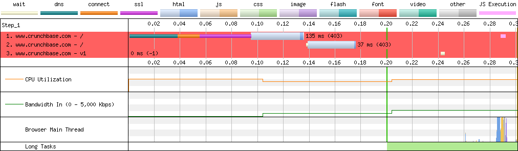 | 2 | https://www.crunchbase.com/ | text/html | Highest | 0.139 s | - | - | - | 36 ms | 1 ms | 5.5 KB | - | 403 | [2606:4700::6812:8d0] |