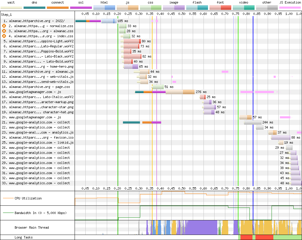 - {"":["https:\/\/almanac.httparchive.org\/en\/2022\/"],"https:\/\/almanac.httparchive.org\/en\/2022\/":["https:\/\/almanac.httparchive.org\/static\/css\/normalize.css?v=3a712a3381a95c0a7b7c6ed3aa03b911","https:\/\/almanac.httparchive.org\/static\/css\/almanac.css?v=222e067b0135e75f99da5f73590dcdce","https:\/\/almanac.httparchive.org\/static\/css\/index.css?v=18e84339b38719ad3c252a1cb28283a0","https:\/\/almanac.httparchive.org\/static\/fonts\/Poppins-Light.woff2","https:\/\/almanac.httparchive.org\/static\/fonts\/Lato-Regular.woff2","https:\/\/almanac.httparchive.org\/static\/fonts\/Poppins-Bold.woff2","https:\/\/almanac.httparchive.org\/static\/fonts\/Lato-Black.woff2","https:\/\/almanac.httparchive.org\/static\/fonts\/Lato-Bold.woff2","https:\/\/almanac.httparchive.org\/static\/images\/home-hero.png","https:\/\/almanac.httparchive.org\/static\/js\/almanac.js?v=c756ab98bd4f2ef42223b108aa37ea04","https:\/\/www.googletagmanager.com\/gtag\/js?id=G-PQ5N2MZG5M","https:\/\/almanac.httparchive.org\/static\/js\/web-vitals.js?v=f6f30f40e7d014a2d38f1362c5eb6244","https:\/\/almanac.httparchive.org\/static\/js\/send-web-vitals.js?v=626d029c7107a8fe569a02a06b2f5894","https:\/\/almanac.httparchive.org\/static\/css\/page.css?v=f237479c0631daba0de02c3f2222a640","https:\/\/almanac.httparchive.org\/static\/images\/character-markup.png","https:\/\/almanac.httparchive.org\/static\/images\/character-star.png","https:\/\/almanac.httparchive.org\/static\/images\/character-hat.png"],"https:\/\/almanac.httparchive.org\/static\/css\/almanac.css?v=222e067b0135e75f99da5f73590dcdce":["https:\/\/almanac.httparchive.org\/static\/fonts\/Lato-Italic.woff2"],"https:\/\/www.googletagmanager.com\/gtag\/js?id=G-PQ5N2MZG5M":["https:\/\/www.googletagmanager.com\/gtag\/js?id=UA-22381566-3&l=dataLayer&cx=c>m=45je54n0v9115874821za200&tag_exp=101509156~102887800~103051953~103077950~103106314~103106316~103116025~103130360~103130362~103200001","https:\/\/www.google-analytics.com\/g\/collect?v=2&tid=G-PQ5N2MZG5M>m=45je54n0v9115874821za200&_p=1745586752313&gcd=13l3l3l3l1l1&npa=0&dma=0&tag_exp=101509156~102887800~103051953~103077950~103106314~103106316~103116025~103130360~103130362~103200001&cid=1043953040.1745586753&ul=en-us&sr=1920x1200&uaa=x86&uab=64&uafvl=%2520Not%2520A%253BBrand%3B99%7CChromium%3B135.0.0.0%7CGoogle%2520Chrome%3B135.0.0.0&uamb=0&uam=Model&uap=Unknown&uapv=0&uaw=0&are=1&frm=0&pscdl=noapi&_s=1&sid=1745586752&sct=1&seg=0&dl=https%3A%2F%2Falmanac.httparchive.org%2Fen%2F2022%2F&dt=The%202022%20Web%20Almanac&en=page_view&_fv=1&_nsi=1&_ss=1&_ee=1&tfd=789","https:\/\/www.google-analytics.com\/g\/collect?v=2&tid=G-PQ5N2MZG5M>m=45je54n0v9115874821za200&_p=1745586752313&gcd=13l3l3l3l1l1&npa=0&dma=0&tag_exp=101509156~102887800~103051953~103077950~103106314~103106316~103116025~103130360~103130362~103200001&cid=1043953040.1745586753&ul=en-us&sr=1920x1200&uaa=x86&uab=64&uafvl=%2520Not%2520A%253BBrand%3B99%7CChromium%3B135.0.0.0%7CGoogle%2520Chrome%3B135.0.0.0&uamb=0&uam=Model&uap=Unknown&uapv=0&uaw=0&are=1&frm=0&pscdl=noapi&_eu=AAAAAAI&sid=1745586752&sct=1&seg=0&dl=https%3A%2F%2Falmanac.httparchive.org%2Fen%2F2022%2F&dt=The%202022%20Web%20Almanac&_s=2&tfd=842"],"https:\/\/www.googletagmanager.com\/gtag\/js?id=UA-22381566-3&l=dataLayer&cx=c>m=45je54n0v9115874821za200&tag_exp=101509156~102887800~103051953~103077950~103106314~103106316~103116025~103130360~103130362~103200001":["https:\/\/www.google-analytics.com\/analytics.js"],"undefined":["https:\/\/almanac.httparchive.org\/static\/images\/favicon.ico","https:\/\/www.google-analytics.com\/collect?v=1&_v=j101&a=471931893&t=event&_s=2&dl=https%3A%2F%2Falmanac.httparchive.org%2Fen%2F2022%2F&ul=en-us&de=UTF-8&dt=The%202022%20Web%20Almanac&sd=24-bit&sr=1920x1200&vp=1351x681&je=0&ec=user&ea=print-mode&el=false&ev=0&_u=aCDAAUIhAAAAACAAI~&jid=&gjid=&cid=1043953040.1745586753&tid=UA-22381566-3&_gid=585045455.1745586753>m=457e54n0za200zb9115874821&gcd=13l3l3l3l1l1&dma=0&tag_exp=102887800~103051953~103077950~103106314~103106316~103116026~103130360~103130362~103200004&jsscut=1&z=1961153974","https:\/\/www.google-analytics.com\/collect?v=1&_v=j101&a=471931893&t=event&_s=3&dl=https%3A%2F%2Falmanac.httparchive.org%2Fen%2F2022%2F&ul=en-us&de=UTF-8&dt=The%202022%20Web%20Almanac&sd=24-bit&sr=1920x1200&vp=1351x681&je=0&ec=user&ea=min-sheets-width&el=true&ev=1&_u=aCDAAUIhAAAAACAAI~&jid=&gjid=&cid=1043953040.1745586753&tid=UA-22381566-3&_gid=585045455.1745586753>m=457e54n0za200zb9115874821&gcd=13l3l3l3l1l1&dma=0&tag_exp=102887800~103051953~103077950~103106314~103106316~103116026~103130360~103130362~103200004&jsscut=1&z=119424254","https:\/\/www.google-analytics.com\/collect?v=1&_v=j101&a=471931893&t=event&_s=4&dl=https%3A%2F%2Falmanac.httparchive.org%2Fen%2F2022%2F&ul=en-us&de=UTF-8&dt=The%202022%20Web%20Almanac&sd=24-bit&sr=1920x1200&vp=1351x681&je=0&ec=user&ea=data-saver&el=not-enabled&ev=0&_u=aCDAAUIhAAAAACAAI~&jid=&gjid=&cid=1043953040.1745586753&tid=UA-22381566-3&_gid=585045455.1745586753>m=457e54n0za200zb9115874821&gcd=13l3l3l3l1l1&dma=0&tag_exp=102887800~103051953~103077950~103106314~103106316~103116026~103130360~103130362~103200004&jsscut=1&z=406976984","https:\/\/www.google-analytics.com\/collect?v=1&_v=j101&a=471931893&t=event&_s=5&dl=https%3A%2F%2Falmanac.httparchive.org%2Fen%2F2022%2F&ul=en-us&de=UTF-8&dt=The%202022%20Web%20Almanac&sd=24-bit&sr=1920x1200&vp=1351x681&je=0&ec=user&ea=connection-type&el=4g&ev=1&_u=aCDAAUIhAAAAACAAI~&jid=&gjid=&cid=1043953040.1745586753&tid=UA-22381566-3&_gid=585045455.1745586753>m=457e54n0za200zb9115874821&gcd=13l3l3l3l1l1&dma=0&tag_exp=102887800~103051953~103077950~103106314~103106316~103116026~103130360~103130362~103200004&jsscut=1&z=952409409","https:\/\/www.google-analytics.com\/collect?v=1&_v=j101&a=471931893&t=event&_s=6&dl=https%3A%2F%2Falmanac.httparchive.org%2Fen%2F2022%2F&ul=en-us&de=UTF-8&dt=The%202022%20Web%20Almanac&sd=24-bit&sr=1920x1200&vp=1351x681&je=0&ec=user&ea=hi-res-canvas&el=supported&ev=1&_u=aCDAAUIhAAAAACAAI~&jid=&gjid=&cid=1043953040