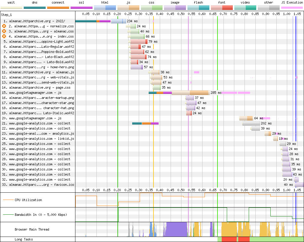 - {"":["https:\/\/almanac.httparchive.org\/en\/2022\/"],"https:\/\/almanac.httparchive.org\/en\/2022\/":["https:\/\/almanac.httparchive.org\/static\/css\/normalize.css?v=3a712a3381a95c0a7b7c6ed3aa03b911","https:\/\/almanac.httparchive.org\/static\/css\/almanac.css?v=222e067b0135e75f99da5f73590dcdce","https:\/\/almanac.httparchive.org\/static\/css\/index.css?v=18e84339b38719ad3c252a1cb28283a0","https:\/\/almanac.httparchive.org\/static\/fonts\/Poppins-Light.woff2","https:\/\/almanac.httparchive.org\/static\/fonts\/Lato-Regular.woff2","https:\/\/almanac.httparchive.org\/static\/fonts\/Poppins-Bold.woff2","https:\/\/almanac.httparchive.org\/static\/fonts\/Lato-Black.woff2","https:\/\/almanac.httparchive.org\/static\/fonts\/Lato-Bold.woff2","https:\/\/almanac.httparchive.org\/static\/images\/home-hero.png","https:\/\/almanac.httparchive.org\/static\/js\/almanac.js?v=c756ab98bd4f2ef42223b108aa37ea04","https:\/\/www.googletagmanager.com\/gtag\/js?id=G-PQ5N2MZG5M","https:\/\/almanac.httparchive.org\/static\/js\/web-vitals.js?v=f6f30f40e7d014a2d38f1362c5eb6244","https:\/\/almanac.httparchive.org\/static\/js\/send-web-vitals.js?v=626d029c7107a8fe569a02a06b2f5894","https:\/\/almanac.httparchive.org\/static\/css\/page.css?v=f237479c0631daba0de02c3f2222a640","https:\/\/almanac.httparchive.org\/static\/images\/character-markup.png","https:\/\/almanac.httparchive.org\/static\/images\/character-star.png","https:\/\/almanac.httparchive.org\/static\/images\/character-hat.png","https:\/\/www.google-analytics.com\/collect?v=1&_v=j101&a=103657641&t=event&_s=2&dl=https%3A%2F%2Falmanac.httparchive.org%2Fen%2F2022%2F&ul=en-us&de=UTF-8&dt=The%202022%20Web%20Almanac&sd=24-bit&sr=1920x1200&vp=1351x681&je=0&ec=user&ea=print-mode&el=false&ev=0&_u=aCDAAUIhAAAAACAAI~&jid=&gjid=&cid=312260120.1745652966&tid=UA-22381566-3&_gid=260435776.1745652966>m=457e54n0h1za200zb9115874821&gcd=13l3l3l3l1l1&dma=0&tag_exp=102887800~103051953~103077950~103106314~103106316~103116026~103130360~103130362~103130498~103130500~103200004&jsscut=1&z=815555618","https:\/\/www.google-analytics.com\/collect?v=1&_v=j101&a=103657641&t=event&_s=3&dl=https%3A%2F%2Falmanac.httparchive.org%2Fen%2F2022%2F&ul=en-us&de=UTF-8&dt=The%202022%20Web%20Almanac&sd=24-bit&sr=1920x1200&vp=1351x681&je=0&ec=user&ea=min-sheets-width&el=true&ev=1&_u=aCDAAUIhAAAAACAAI~&jid=&gjid=&cid=312260120.1745652966&tid=UA-22381566-3&_gid=260435776.1745652966>m=457e54n0h1za200zb9115874821&gcd=13l3l3l3l1l1&dma=0&tag_exp=102887800~103051953~103077950~103106314~103106316~103116026~103130360~103130362~103130498~103130500~103200004&jsscut=1&z=1569360836","https:\/\/www.google-analytics.com\/collect?v=1&_v=j101&a=103657641&t=event&_s=4&dl=https%3A%2F%2Falmanac.httparchive.org%2Fen%2F2022%2F&ul=en-us&de=UTF-8&dt=The%202022%20Web%20Almanac&sd=24-bit&sr=1920x1200&vp=1351x681&je=0&ec=user&ea=data-saver&el=not-enabled&ev=0&_u=aCDAAUIhAAAAACAAI~&jid=&gjid=&cid=312260120.1745652966&tid=UA-22381566-3&_gid=260435776.1745652966>m=457e54n0h1za200zb9115874821&gcd=13l3l3l3l1l1&dma=0&tag_exp=102887800~103051953~103077950~103106314~103106316~103116026~103130360~103130362~103130498~103130500~103200004&jsscut=1&z=419934100","https:\/\/www.google-analytics.com\/collect?v=1&_v=j101&a=103657641&t=event&_s=5&dl=https%3A%2F%2Falmanac.httparchive.org%2Fen%2F2022%2F&ul=en-us&de=UTF-8&dt=The%202022%20Web%20Almanac&sd=24-bit&sr=1920x1200&vp=1351x681&je=0&ec=user&ea=connection-type&el=4g&ev=1&_u=aCDAAUIhAAAAACAAI~&jid=&gjid=&cid=312260120.1745652966&tid=UA-22381566-3&_gid=260435776.1745652966>m=457e54n0h1za200zb9115874821&gcd=13l3l3l3l1l1&dma=0&tag_exp=102887800~103051953~103077950~103106314~103106316~103116026~103130360~103130362~103130498~103130500~103200004&jsscut=1&z=1084424016","https:\/\/www.google-analytics.com\/collect?v=1&_v=j101&a=103657641&t=event&_s=6&dl=https%3A%2F%2Falmanac.httparchive.org%2Fen%2F2022%2F&ul=en-us&de=UTF-8&dt=The%202022%20Web%20Almanac&sd=24-bit&sr=1920x1200&vp=1351x681&je=0&ec=user&ea=hi-res-canvas&el=supported&ev=1&_u=aCDAAUIhAAAAACAAI~&jid=&gjid=&cid=312260120.1745652966&tid=UA-22381566-3&_gid=260435776.1745652966>m=457e54n0h1za200zb9115874821&gcd=13l3l3l3l1l1&dma=0&tag_exp=102887800~103051953~103077950~103106314~103106316~103116026~103130360~103130362~103130498~103130500~103200004&jsscut=1&z=1108155612","https:\/\/www.google-analytics.com\/collect?v=1&_v=j101&a=103657641&t=event&ni=1&_s=7&dl=https%3A%2F%2Falmanac.httparchive.org%2Fen%2F2022%2F&ul=en-us&de=UTF-8&dt=The%202022%20Web%20Almanac&sd=24-bit&sr=1920x1200&vp=1351x681&je=0&ec=Web%20Vitals&ea=FCP&el=v4-1745652965571-9967714192735&ev=656&_u=aCDAAUIhAAAAACAAI~&jid=&gjid=&cid=312260120.1745652966&tid=UA-22381566-3&_gid=260435776.1745652966>m=457e54n0h1za200zb9115874821&gcd=13l3l3l3l1l1&dma=0&tag_exp=102887800~103051953~103077950~103106314~103106316~103116026~103130360~103130362~103130498~103130500~103200004&jsscut=1&z=1316507574"],"https:\/\/almanac.httparchive.org\/static\/css\/almanac.css?v=222e067b0135e75f99da5f73590dcdce":["https:\/\/almanac.httparchive.org\/static\/fonts\/Lato-Italic.woff2"],"https:\/\/www.googletagmanager.com\/gtag\/js?id=G-PQ5N2MZG5M":["https:\/\/www.googletagmanager.com\/gtag\/js?id=UA-22381566-3&l=dataLayer&cx=c>m=45je54n0h1v9115874821za200&tag_exp=102887800~103051953~103077950~103106314~103106316~103116026~103130360~103130362~103200004","https:\/\/www.google-analytics.com\/g\/collect?v=2&tid=G-PQ5N2MZG5M>m=45je54n0h1v9115874821za200&_p=1745652965377&gcd=13l3l3l3l1l1&npa=0&dma=0&tag_exp=102887800~103051953~103077950~103106314~103106316~103116026~103130360~103130362~103200004&cid=312260120.1745652966&ul=en-us&sr=1920x1200&uaa=x86&uab=64&uafvl=%2520Not%2520A%253BBrand%3B99%7CChromium%3B135.0.0.0%7CGoogle%2520Chrome%3B135.0.0.0&uamb=0&uam=Model&uap=Unknown&uapv=0&uaw=0&are=1&frm=0&pscdl=noapi&_s=1&sid=1745652965&sct=1&seg=0&dl=https%3A%2F%2Falmanac.httparchive.org%2Fen%2F2022%2F&dt=The%202022%20Web%20Almanac&en=page_view&_fv=1&_nsi=1&_ss=1&_ee=1&tfd=789","https:\/\/www.google-analytics.com\/g\/collect?v