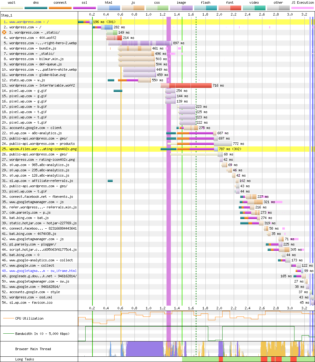 {"lcp_elem_stats":{"startTime":1620,"nodeName":"IMG","url":"https:\/\/wordpress.com\/wp-content\/uploads\/2025\/07\/wordpress-done-right-hero-2.webp","size":386371,"loadTime":1364.7999999998137,"renderTime":1620,"attributes":[{"name":"src","value":"https:\/\/wordpress.com\/wp-content\/uploads\/2025\/07\/wordpress-done-right-hero-2.webp"},{"name":"loading","value":"eager"},{"name":"alt","value":""},{"name":"role","value":"presentation"},{"name":"width","value":"1509"},{"name":"height","value":"1198"}],"boundingClientRect":{"x":603.953125,"y":144,"width":719.546875,"height":571.25,"top":144,"right":1323.5,"bottom":715.25,"left":603.953125},"naturalWidth":1509,"naturalHeight":1198,"styles":{"background-image":"none","pointer-events":"auto","position":"absolute","width":"719.547px","height":"571.25px"},"percentOfViewport":"0.415","cover90viewport":false},"raw_lcp_element":{"nodeName":"IMG","attributes":[{"name":"src","value":"https:\/\/wordpress.com\/wp-content\/uploads\/2025\/07\/wordpress-done-right-hero-2.webp"},{"name":"loading","value":"eager"},{"name":"alt","value":""},{"name":"role","value":"presentation"},{"name":"width","value":"1509"},{"name":"height","value":"1198"}]},"lcp_resource":{"id":"7640.6","sequence":4,"body":"\/home\/pmeenan\/wptagent\/work\/wptagent-v6-manual-20241002-10.20.0.3\/260105_CS_H.1.0\/bodies\/7640.6","url":"https:\/\/wordpress.com\/wp-content\/uploads\/2025\/07\/wordpress-done-right-hero-2.webp","status":200,"connectionId":187,"protocol":"h2","connectionReused":true,"fromServiceWorker":false,"timing":{"requestTime":7215.734445,"proxyStart":-1,"proxyEnd":-1,"dnsStart":-1,"dnsEnd":-1,"connectStart":-1,"connectEnd":-1,"sslStart":-1,"sslEnd":-1,"workerStart":-1,"workerReady":-1,"workerFetchStart":-1,"workerRespondWithSettled":-1,"sendStart":1.184,"sendEnd":7.292,"pushStart":0,"pushEnd":0,"receiveHeadersStart":152.29,"receiveHeadersEnd":152.503},"fromDiskCache":false,"remoteIPAddress":"192.0.78.17","remotePort":443,"securityState":"secure","securityDetails":{"protocol":"TLS 1.3","keyExchange":"","keyExchangeGroup":"X25519MLKEM768","cipher":"AES_128_GCM","certificateId":0,"subjectName":"wordpress.com","sanList":["*.wordpress.com","wordpress.com"],"issuer":"E8","validFrom":1762631119,"validTo":1770407118,"signedCertificateTimestampList":[{"status":"Verified","origin":"Embedded in certificate","logDescription":"DigiCert 'Wyvern2026h1'","logId":"6411C46CA412ECA7891CA2022E00BCAB4F2807D41E3527ABEAFED503C97DCDF0","timestamp":1762634629918,"hashAlgorithm":"SHA-256","signatureAlgorithm":"ECDSA","signatureData":"304602210097BD6A2674C835AB155B36E942B877F1B58B073DFDFEA5830ADDBE31F47D8D7B022100FB706115369FA91FFC861BBBECA8567236400090AAD879922691165E58F247CE"},{"status":"Verified","origin":"Embedded in certificate","logDescription":"Google 'Xenon2026h1' log","logId":"969764BF555897ADF743876837084277E9F03AD5F6A4F3366E46A43F0FCAA9C6","timestamp":1762634629984,"hashAlgorithm":"SHA-256","signatureAlgorithm":"ECDSA","signatureData":"3046022100C9E27BBE79D70DEF35093262CECAE0F179211E7DF4377529A15A3D163190F86A02210096869AE5E065B8B778ED6DE08A7574A32B53CC374CDA68700587080F2DDB72C8"}],"certificateTransparencyCompliance":"compliant","serverSignatureAlgorithm":1027,"encryptedClientHello":false},"fromPrefetchCache":false,"response_headers":{"accept-ranges":"bytes","alt-svc":"h3=\":443\"; ma=86400","content-length":"310942","content-type":"image\/webp","date":"Mon, 05 Jan 2026 22:11:03 GMT","expires":"Mon, 13 Oct 2025 16:59:50 GMT","last-modified":"Mon, 14 Jul 2025 12:55:09 GMT","server":"nginx","server-timing":"a8c-cdn, dc;desc=dca, cache;desc=HIT;dur=1.0","strict-transport-security":"max-age=31536000; preload","x-ac":"2.dca _dca HIT","x-orig-src":"01_mogdir"},"request_headers":{":authority":"wordpress.com",":method":"GET",":path":"\/wp-content\/uploads\/2025\/07\/wordpress-done-right-hero-2.webp",":scheme":"https","accept":"image\/avif,image\/webp,image\/apng,image\/svg+xml,image\/*,*\/*;q=0.8","accept-encoding":"gzip, deflate, br, zstd","accept-language":"en-US,en;q=0.9","cookie":"tk_ai=fj%2BWkh8opK2qNCX1abbV%2Bdg0; tk_ai_explat=fj%2BWkh8opK2qNCX1abbV%2Bdg0; tk_qs=_en%3Dwpcom_experiment_variation_assigned%26_ut%3Danon%26_ui%3Dfj%252BWkh8opK2qNCX1abbV%252Bdg0%26_ts%3D1767651063383%26experiment_id%3D22418%26experiment_variation_id%3D5539%26reason%3Dset_by_anon_id; explat_test_aa_weekly_lohp_2026_week_02=control","priority":"u=2, i","referer":"https:\/\/wordpress.com\/","sec-ch-ua":"\" Not A;Brand\";v=\"99\", \"Chromium\";v=\"143\", \"Google Chrome\";v=\"143\"","sec-ch-ua-mobile":"?0","sec-ch-ua-platform":"\"Unknown\"","sec-fetch-dest":"image","sec-fetch-mode":"no-cors","sec-fetch-site":"same-origin","user-agent":"Mozilla\/5.0 (X11; Linux x86_64) AppleWebKit\/537.36 (KHTML, like Gecko) Chrome\/143.0.0.0 Safari\/537.36 PTST\/260102.143750"},"initiator":{"type":"parser","url":"https:\/\/wordpress.com\/","lineNumber":1467,"columnNumber":358},"documentURL":"https:\/\/wordpress.com\/","timestamp":7215.731651,"frameId":"E1E40A0C0B989BF202CC2BABE098B8AB","hasUserGesture":false,"type":"Image","wallTime":1767651063.459421,"initialPriority":"Medium","priority":"High","transfer_size":311574},"is_lcp_statically_discoverable":true,"is_lcp_preloaded":false,"lcp_preload":[],"web_vitals_js":["https:\/\/wordpress.com\/wp-content\/js\/bilmur.min.js?i=17&m=202550"],"gaming_metrics":{"fidIframeOverlaySoft":false},"speculation_rules":{"htmlRules":[{"prefetch":[{"source":"document","where":{"and":[{"href_matches":"\/*"},{"not":{"href_matches":["\/wp-*.php","\/wp-admin\/*","\/files\/*","\/wp-content\/*","\/wp-content\/plugins\/*","\/wp-content\/themes\/h4\/*","\/*\\?(.+)"]}},{"not":{"selector_matches":"a[rel~=\"nofollow\"]"}},{"not":{"selector_matches":".no-prefetch, .no-prefetch a"}}]},"eagerness":"conservative"}]}],"httpHeaderRules":[]}}