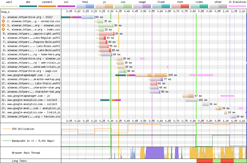 - {"":["https:\/\/almanac.httparchive.org\/en\/2022\/"],"https:\/\/almanac.httparchive.org\/en\/2022\/":["https:\/\/almanac.httparchive.org\/static\/css\/normalize.css?v=3a712a3381a95c0a7b7c6ed3aa03b911","https:\/\/almanac.httparchive.org\/static\/css\/almanac.css?v=f1b659664e1ffbc5e1f3feca4080486d","https:\/\/almanac.httparchive.org\/static\/css\/index.css?v=10da3c5123c1a99e20252d43085e83d5","https:\/\/almanac.httparchive.org\/static\/fonts\/Poppins-Light.woff2","https:\/\/almanac.httparchive.org\/static\/fonts\/Lato-Regular.woff2","https:\/\/almanac.httparchive.org\/static\/fonts\/Poppins-Bold.woff2","https:\/\/almanac.httparchive.org\/static\/fonts\/Lato-Black.woff2","https:\/\/almanac.httparchive.org\/static\/fonts\/Lato-Bold.woff2","https:\/\/almanac.httparchive.org\/static\/images\/home-hero.png","https:\/\/almanac.httparchive.org\/static\/js\/almanac.js?v=fa418742db0ee3ef3f6f493962cd0dc7","https:\/\/www.googletagmanager.com\/gtag\/js?id=G-PQ5N2MZG5M","https:\/\/almanac.httparchive.org\/static\/js\/web-vitals.js?v=e7b8ecda99703fdc7c6a33b6a3d07cc6","https:\/\/almanac.httparchive.org\/static\/js\/send-web-vitals.js?v=67574c23a511f3149c90c88735c5a6f3","https:\/\/almanac.httparchive.org\/static\/css\/page.css?v=9a1ae5aea9b36df260da9f7c442073e7","https:\/\/almanac.httparchive.org\/static\/images\/character-markup.png","https:\/\/almanac.httparchive.org\/static\/images\/character-star.png","https:\/\/almanac.httparchive.org\/static\/images\/character-hat.png"],"https:\/\/almanac.httparchive.org\/static\/css\/almanac.css?v=f1b659664e1ffbc5e1f3feca4080486d":["https:\/\/almanac.httparchive.org\/static\/fonts\/Lato-Italic.woff2"],"https:\/\/www.googletagmanager.com\/gtag\/js?id=G-PQ5N2MZG5M":["https:\/\/www.googletagmanager.com\/gtag\/js?id=UA-22381566-3&cx=c>m=4e61m1h2","https:\/\/www.google-analytics.com\/g\/collect?v=2&tid=G-PQ5N2MZG5M>m=45je61m1h2v9115874821za200zd9115874821&_p=1769280320554&gcd=13l3l3l3l1l1&npa=0&dma=0&cid=2121178749.1769280321&ul=en-us&sr=1920x1200&uaa=x86&uab=64&uafvl=%2520Not%2520A%253BBrand%3B99%7CChromium%3B144.0.0.0%7CGoogle%2520Chrome%3B144.0.0.0&uamb=0&uam=Model&uap=Unknown&uapv=0&uaw=0&are=1&frm=0&pscdl=noapi&_s=1&tag_exp=103116026~103200004~104527907~104528500~104684208~104684211~105391253~115938466~115938468~116185179~116185180~116682875~117025848~117041588~117223560&sid=1769280320&sct=1&seg=0&dl=https%3A%2F%2Falmanac.httparchive.org%2Fen%2F2022%2F&dt=The%202022%20Web%20Almanac&en=page_view&_fv=1&_nsi=1&_ss=1&_ee=1&tfd=755","https:\/\/www.google-analytics.com\/g\/collect?v=2&tid=G-PQ5N2MZG5M>m=45je61m1h2v9115874821za200zd9115874821&_p=1769280320554&gcd=13l3l3l3l1l1&npa=0&dma=0&cid=2121178749.1769280321&ul=en-us&sr=1920x1200&uaa=x86&uab=64&uafvl=%2520Not%2520A%253BBrand%3B99%7CChromium%3B144.0.0.0%7CGoogle%2520Chrome%3B144.0.0.0&uamb=0&uam=Model&uap=Unknown&uapv=0&uaw=0&are=1&frm=0&pscdl=noapi&_eu=AAAAAAQ&tag_exp=103116026~103200004~104527907~104528500~104684208~104684211~105391253~115938466~115938468~116185179~116185180~116682875~117025848~117041588~117223560&sid=1769280320&sct=1&seg=0&dl=https%3A%2F%2Falmanac.httparchive.org%2Fen%2F2022%2F&dt=The%202022%20Web%20Almanac&_s=2&tfd=851"],"https:\/\/www.googletagmanager.com\/gtag\/js?id=UA-22381566-3&cx=c>m=4e61m1h2":["https:\/\/www.google-analytics.com\/analytics.js"],"https:\/\/www.google-analytics.com\/analytics.js":["https:\/\/www.google-analytics.com\/plugins\/ua\/linkid.js"],"undefined":["https:\/\/almanac.httparchive.org\/static\/images\/favicon.ico"]}